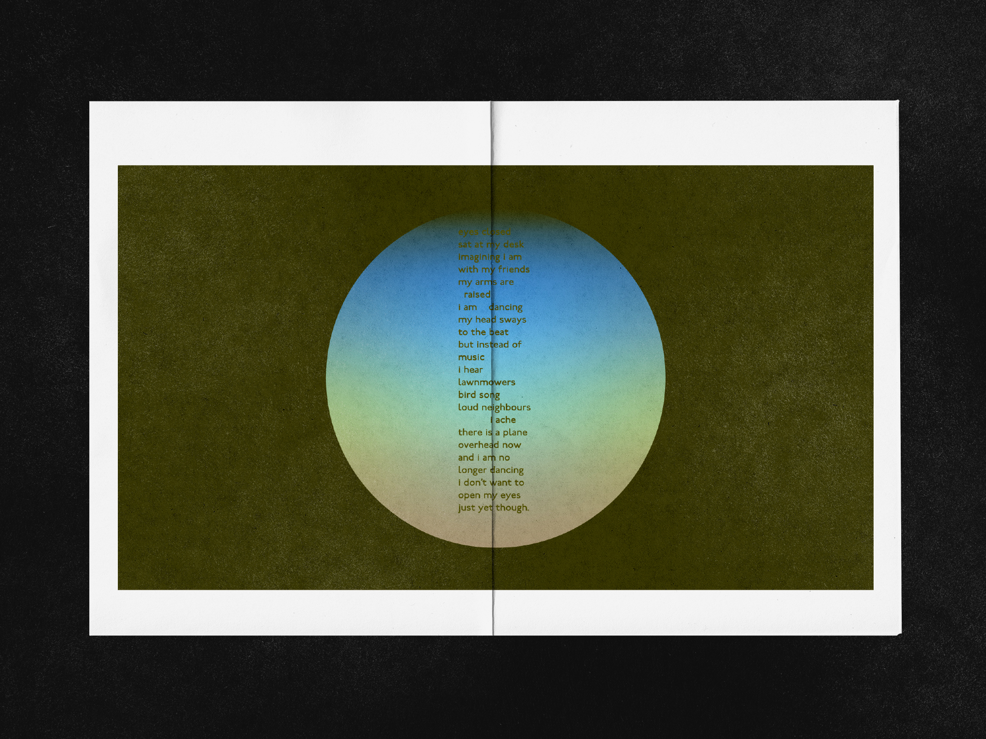 Lockdown has created a universal restriction that has been felt globally. We now navigate a shrunk world, with our feet only taking us so far. Life has been reduced down to a repetitive blurring of days, from black through indigo, purple, pink, orange and green to blue, and then back to black again. This gradient is only broken up by walks that are a vital form of respite from the homogeny. Pre-COVID we often found ourselves walking with a destination, a purpose and time constraints. Lockdown has rendered these immaterial, allowing for a reduced pace and increased observation of not only the visual but also the feeling underfoot and internally. An imagined rendering of a time and place just out of reach allows for increased sensitivity in mapping the various stratification within the terrain. Lacking human interaction, communication outside the household is limited to video calling and cautious interactions on the street, highlighting the need of a digital world for my distant missed ones and my experience of lockdown to co-exist in.