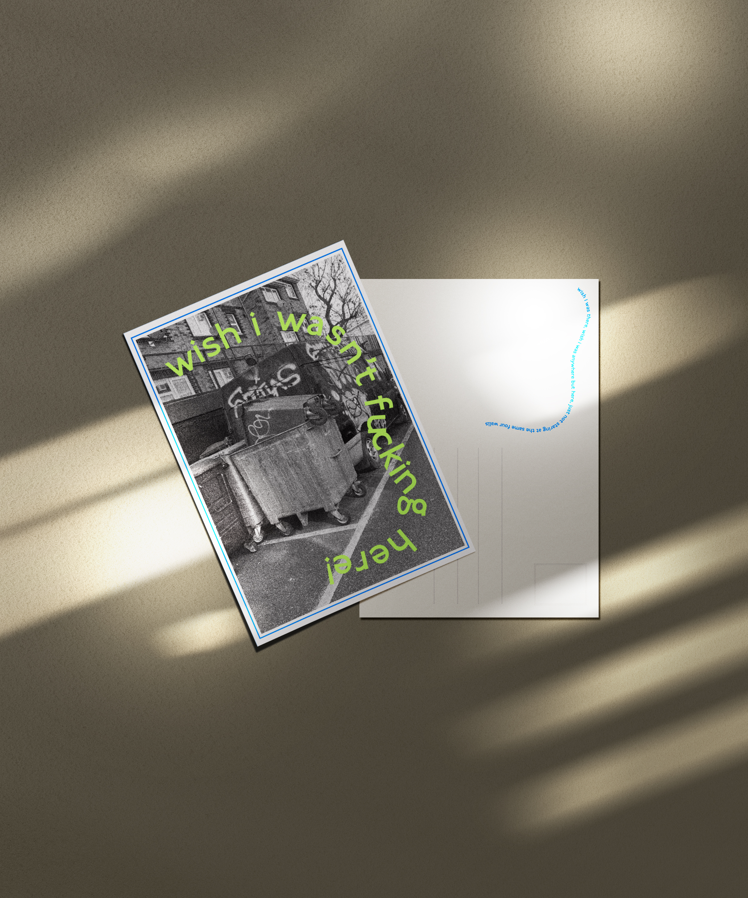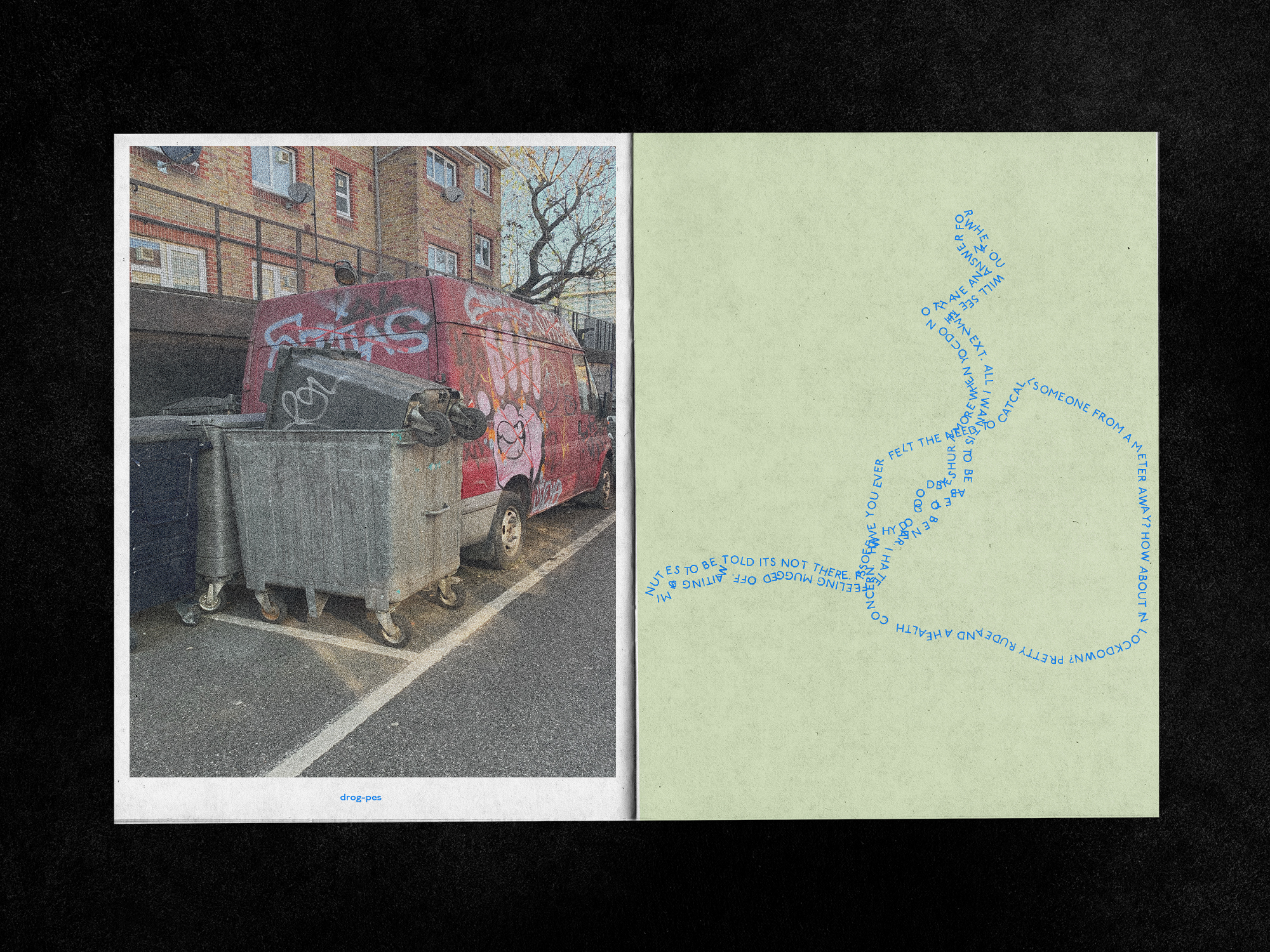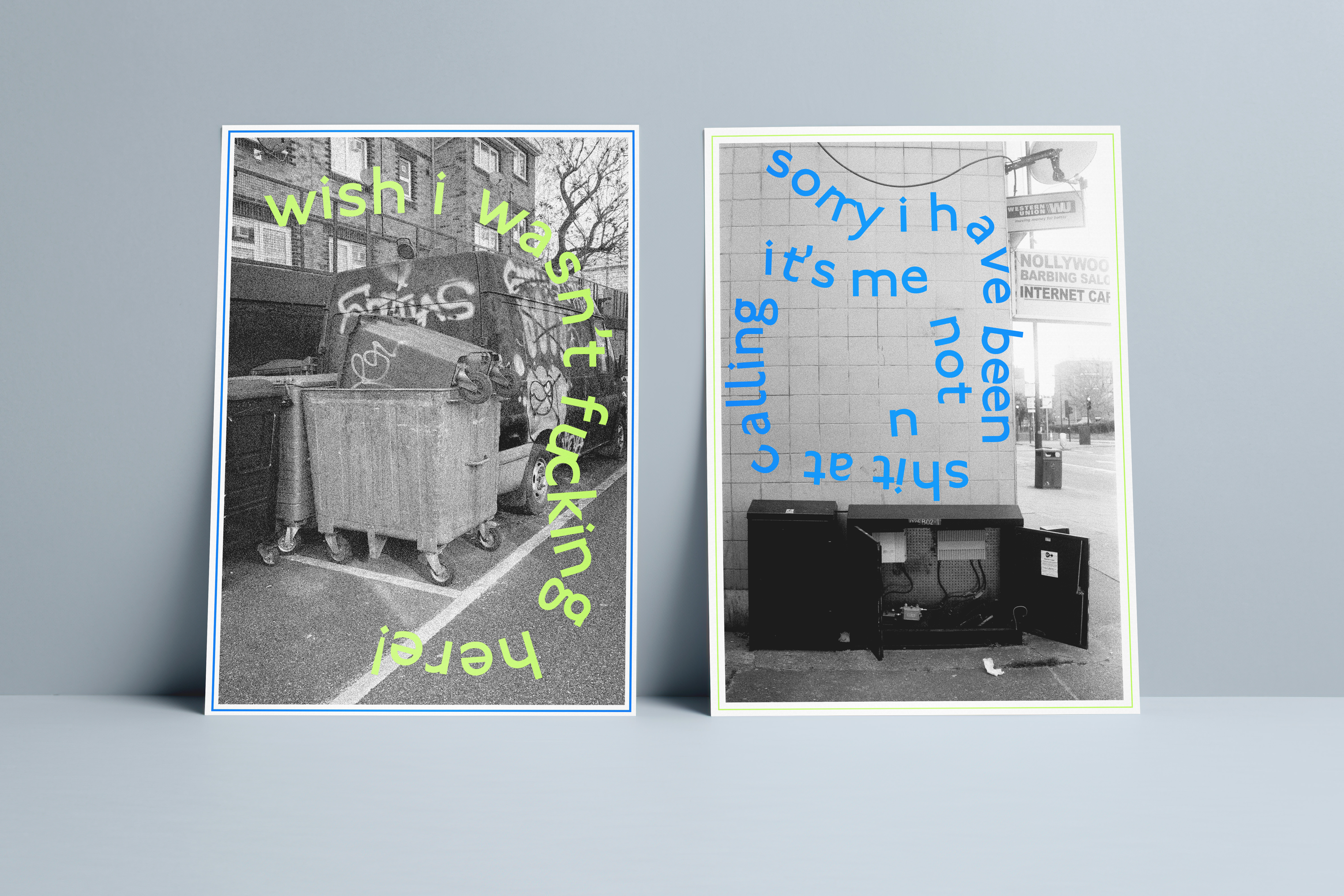My work aims to address the frustration of lockdown, mapping mundanity, light, feelings and geographical landmarks through colour, text and photography creating contemporary psychogeographic readings of environments I reside in and places I long to be in. The slight changes in light at dusk and dawn dance across your eyes in a frustrating two-step, noisily receding and advancing between foreground and background. Feelings of being stuck equally dance between foreground and background, longing for elsewhere or another time. By recreating maps, I find myself negotiating the demarcation of space, and questioning the structures that determine who is valid to be in these spaces. I walk through liminal spaces in the city, wandering through deserted streets and industrial estates with mutated wildlife, whilst finding myself in a liminal space too. Stuck between wanting to be elsewhere and also nowhere; stuck between the past and the future but not quite living in the present.
